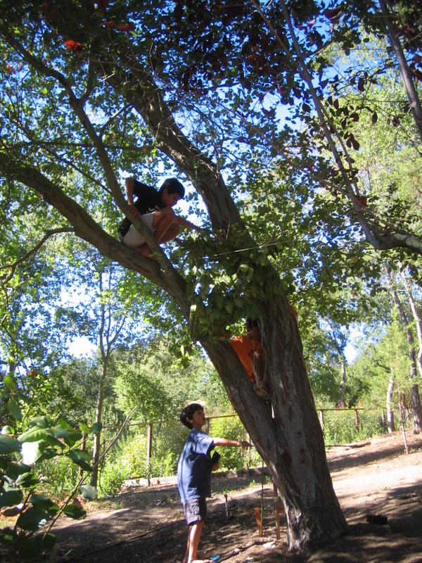 On the way home we stopped off at the Oak residence in Orinda (from Redwoods to Oaks!). Here are the 3 boys climbing in their backyard.