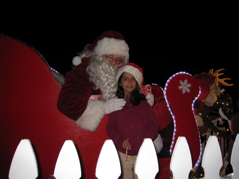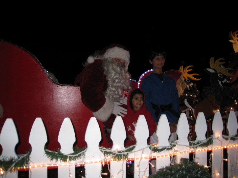 Santa came to our neighborhood a little early to visit all the kids. His sleigh was pulled thru our street by the Tustin Police.