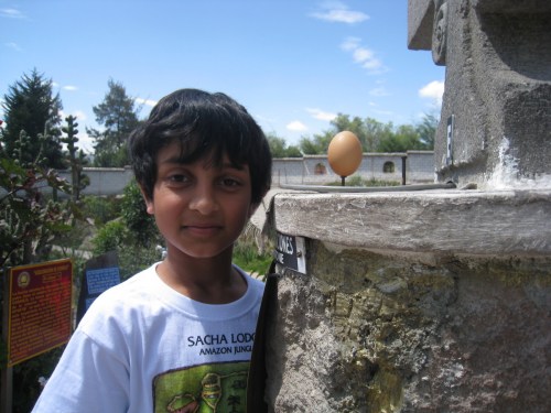 Another interesting feature of the equator is that one can balance an egg on a nail head. Supposedly, the gravitational forces at the equator are neutral allowing one to balance the egg. Once again, I’m not sure I buy the logic, but sure enough, it did work and it sure impressed the kids! We should now try it at home to disprove this theory. Any physicists in the house with a hypothesis as to why this works?