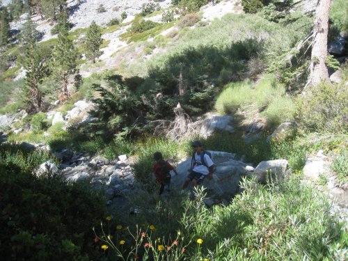Here we are about half way up. There is a cabin with a nice stream running by it.