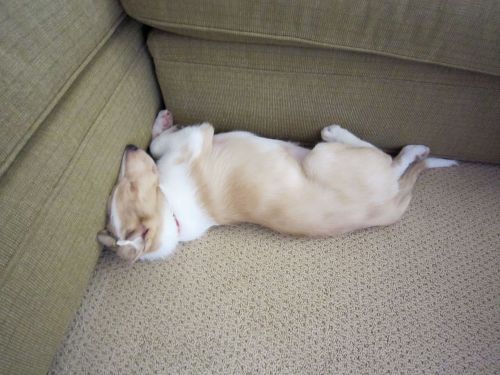 Joey is finally getting into a routine. He slept seven whole hours last night and only had two little accidents in the house today! He is also napping a bit more during the day, and seems a lot more relaxed.