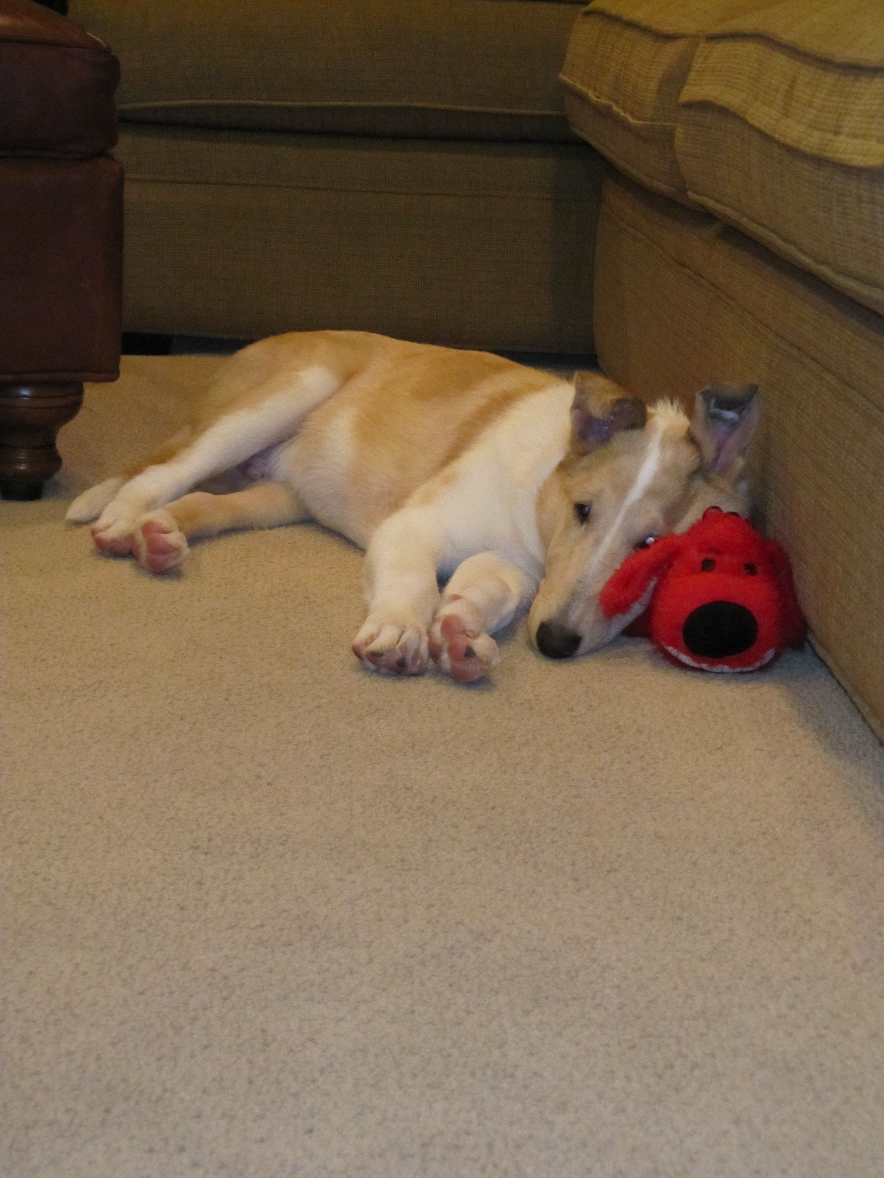 Wearing those hyper pups out is the way to go! When they’re tired, they are wonderful to have around!