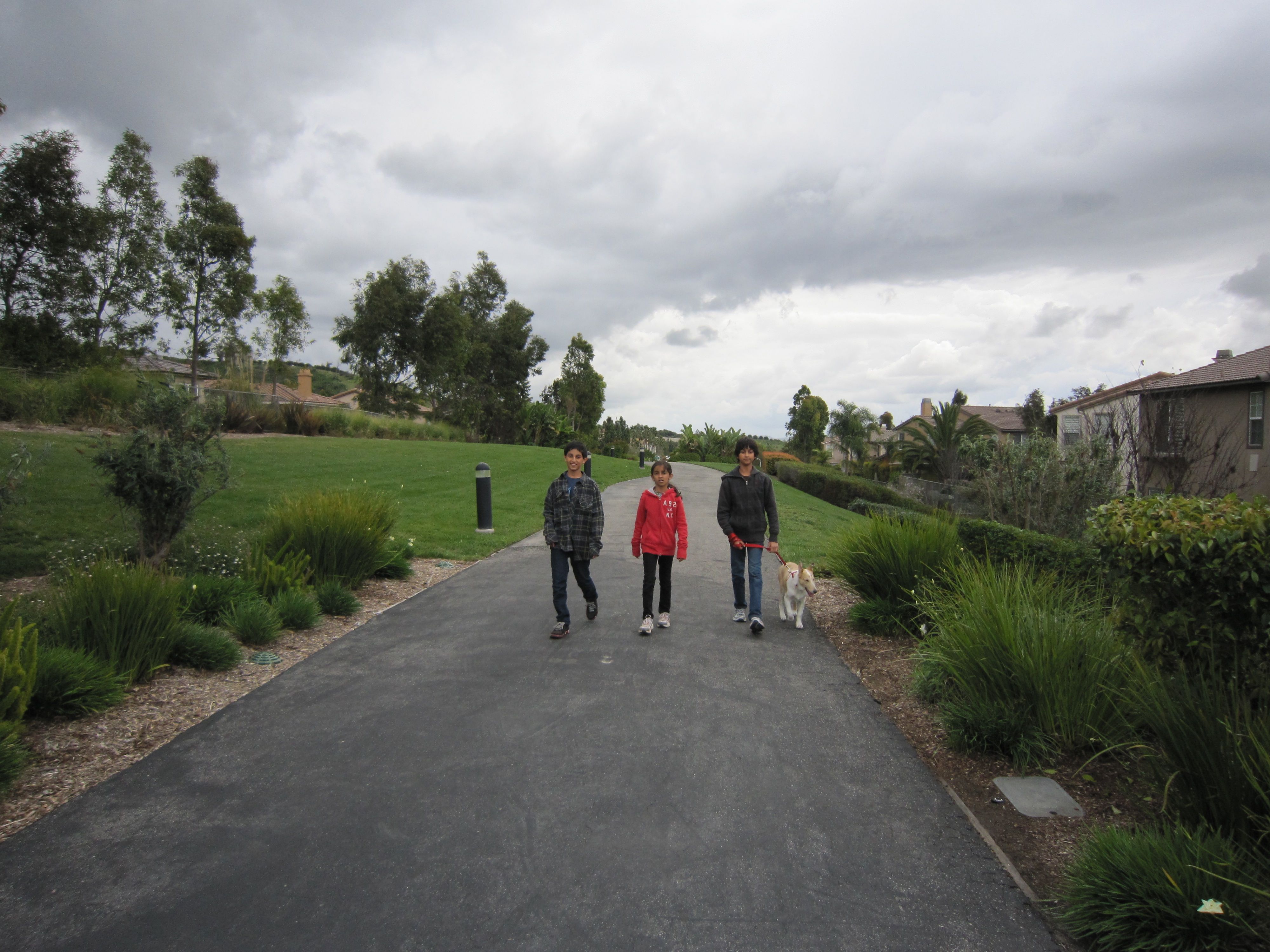 This past weekend, it was raining but we found a small window that was dry enough to take Joey for a walk.