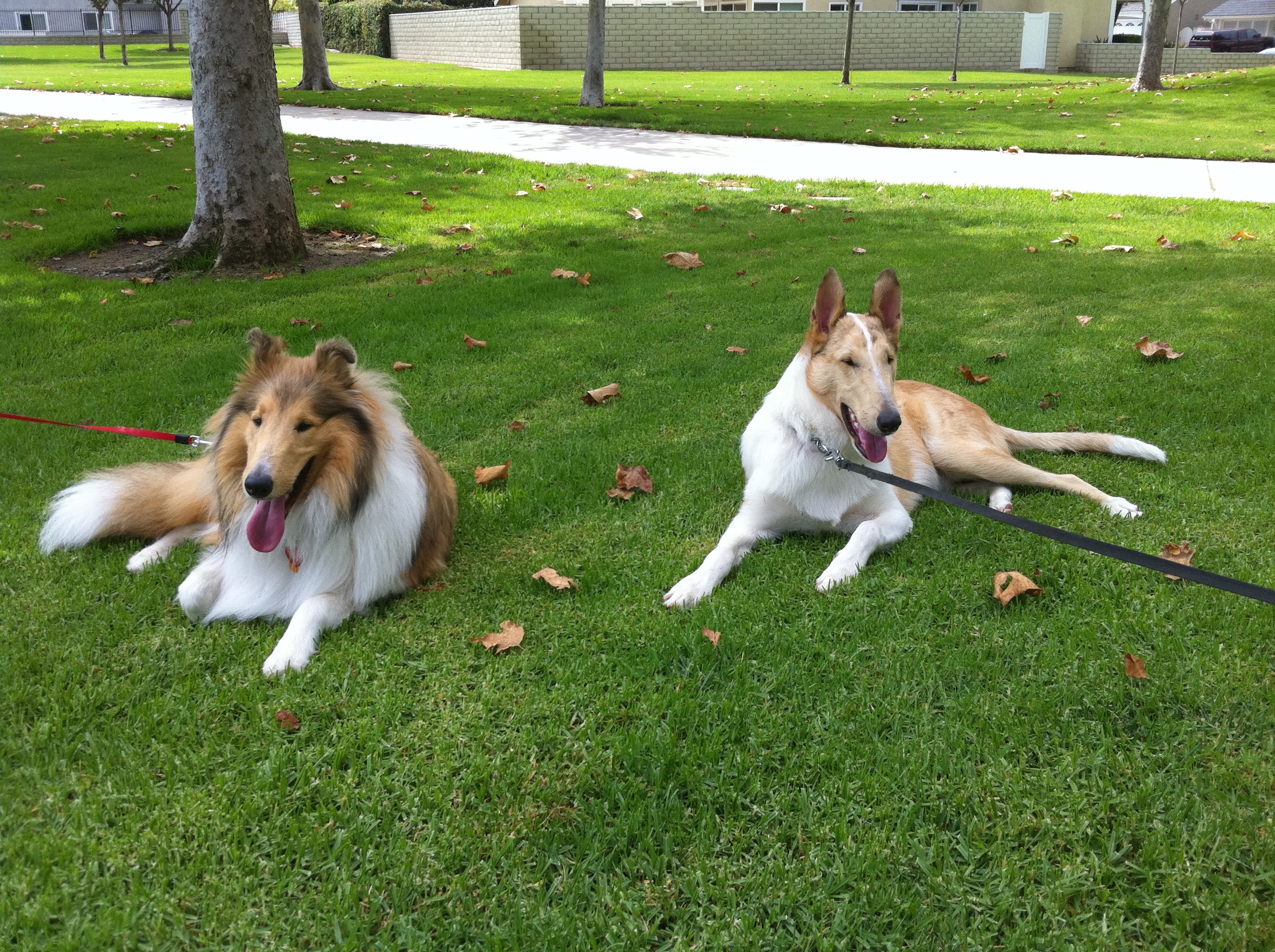 It’s a small world. Joey’s littermate happens to live just a few miles from our house. Anjali and Annika went to the park to visit Kieran. Here they are resting after an hour of play time!