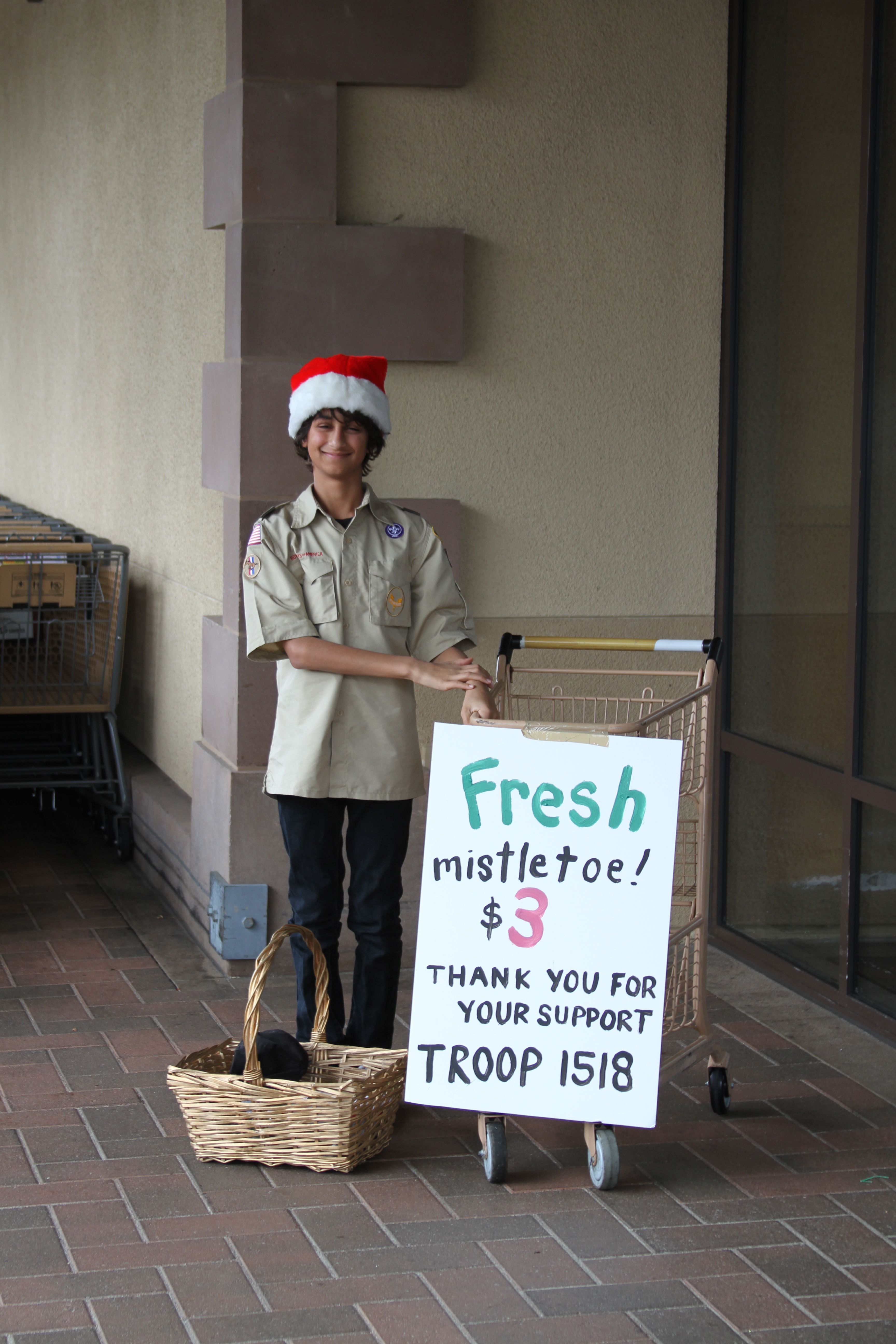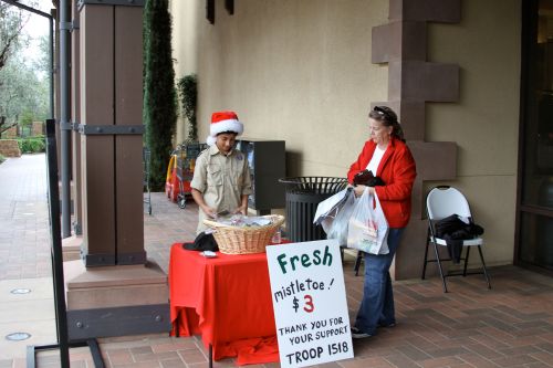 A couple of days before Christmas, the boys were out selling mistletoe as part of a Boy Scout activity.