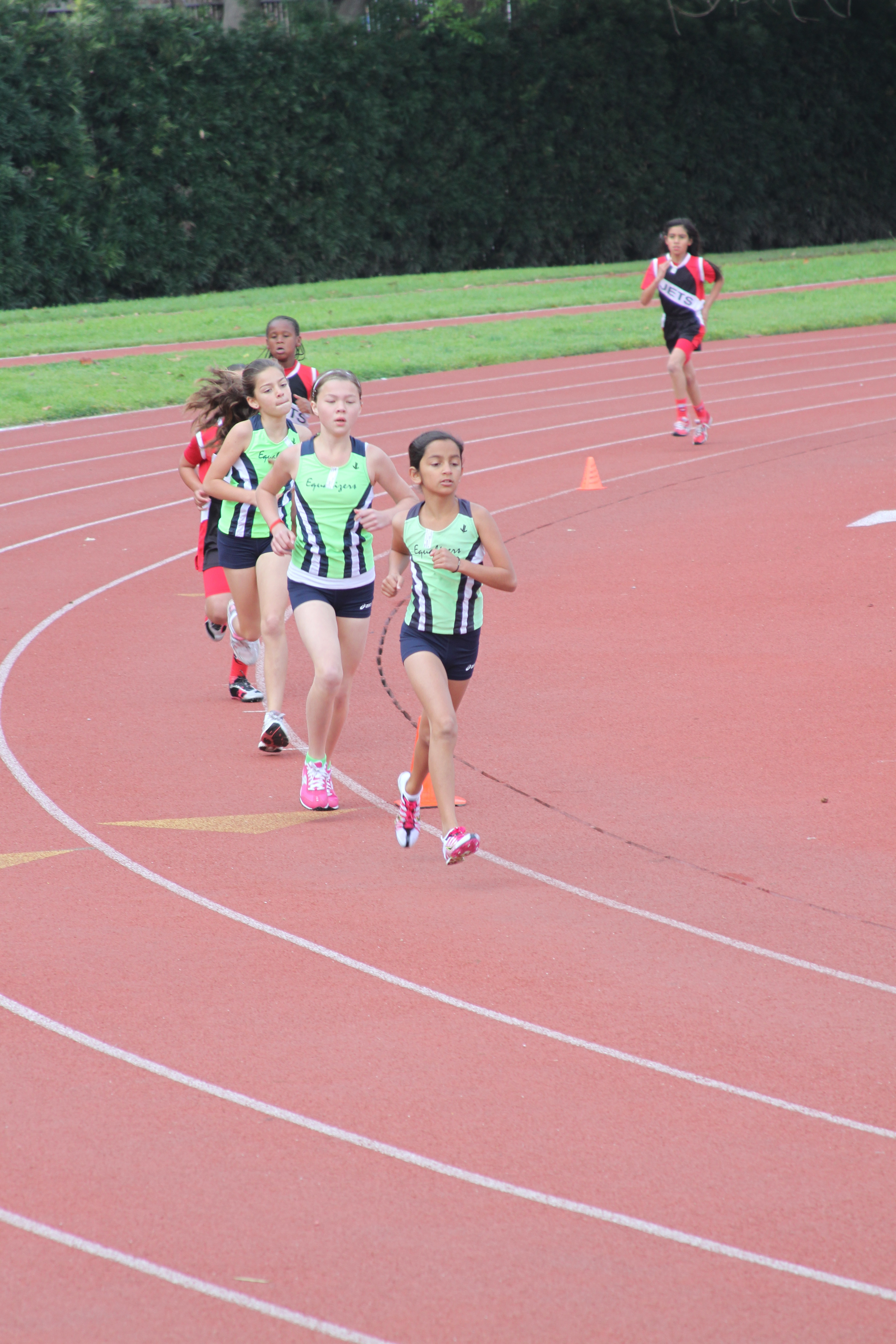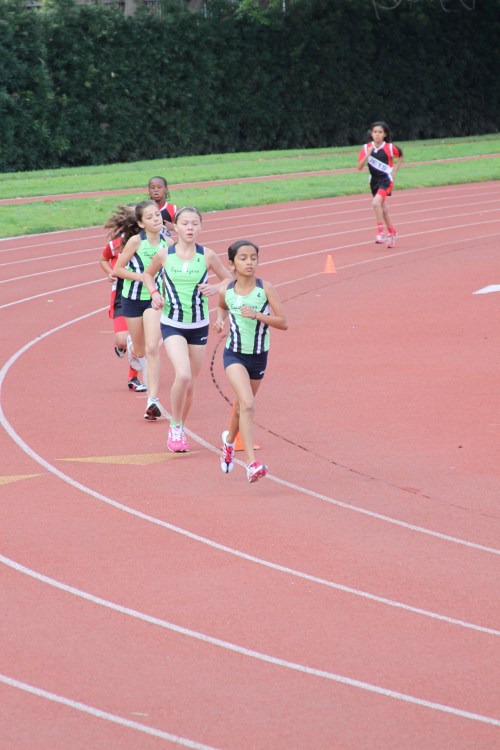 Annika started off with the 1500m and PR’d down to a 6:28. Here she is pacing her group.
