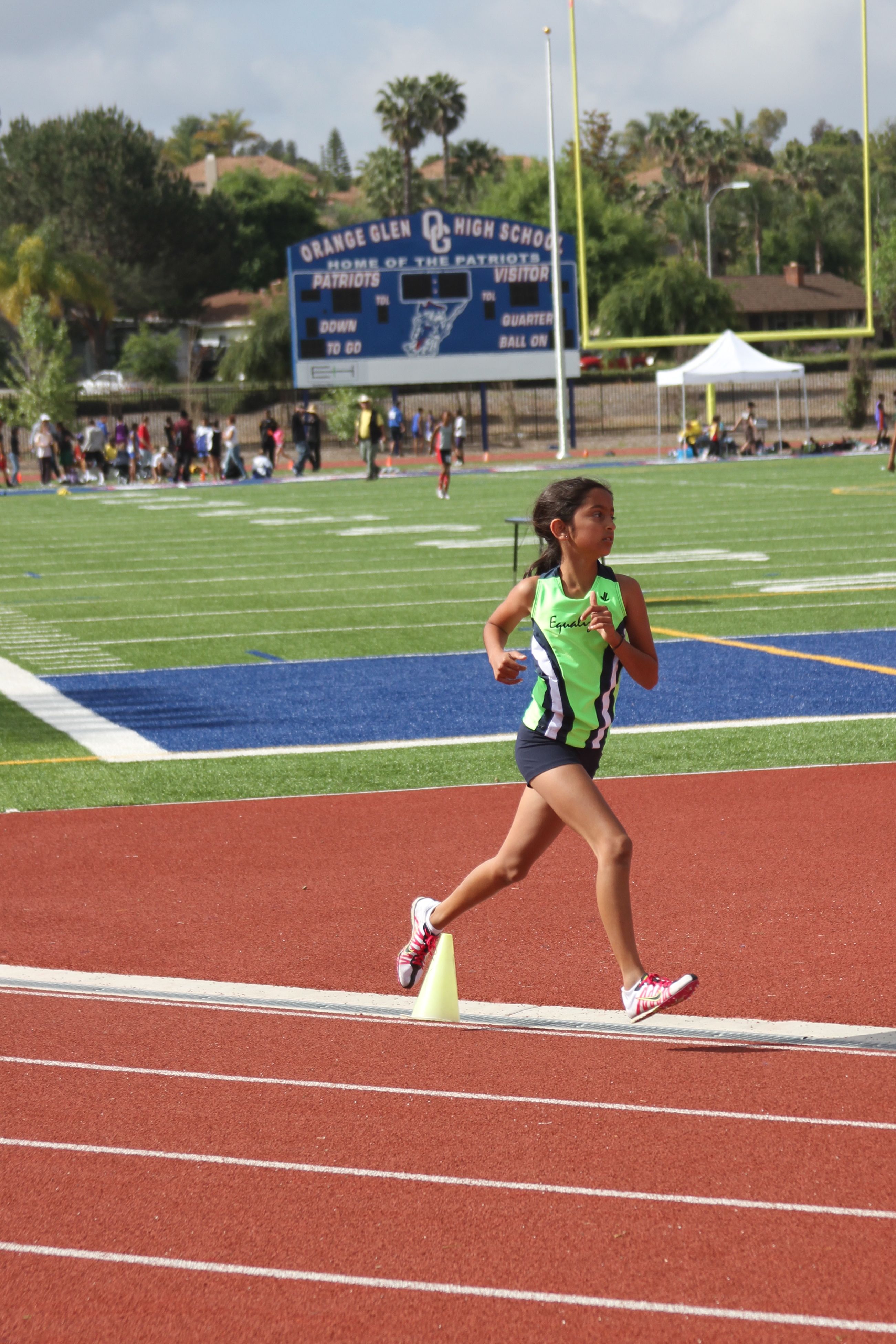 Yesterday, I drove down to Escondido for a track meet for Annika. Here she is running in the 1500m race. She improved another 4 seconds just short of the six minute mark to 6:03.