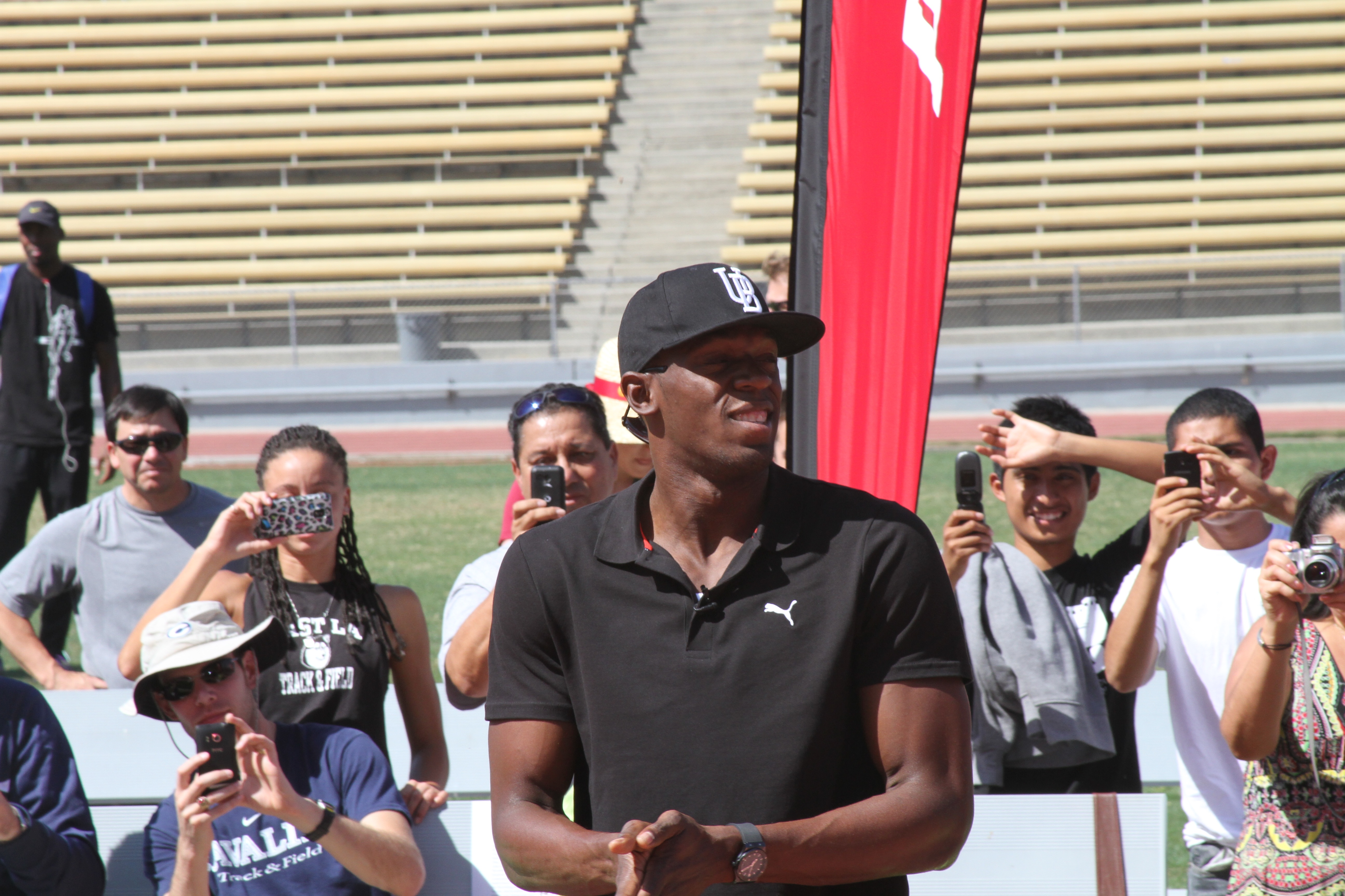 Usain Bolt (the world’s fastest man) came to visit at the local college (Mt. Sac). Anjali took the kids to see him as he hosted a running clinic. Usain has a 9.58 second World record for the 100M along with a host of others. He spoke about his training regimen and complained about the heat in So Cal! Isn’t he from Jamaica?