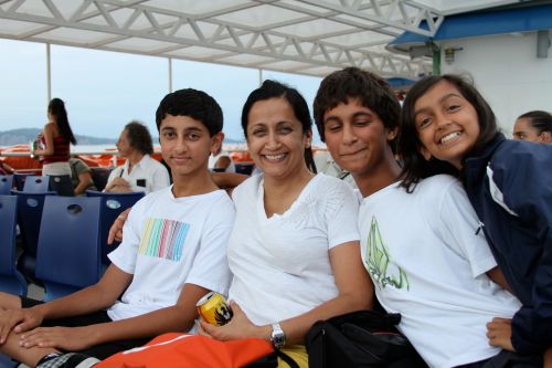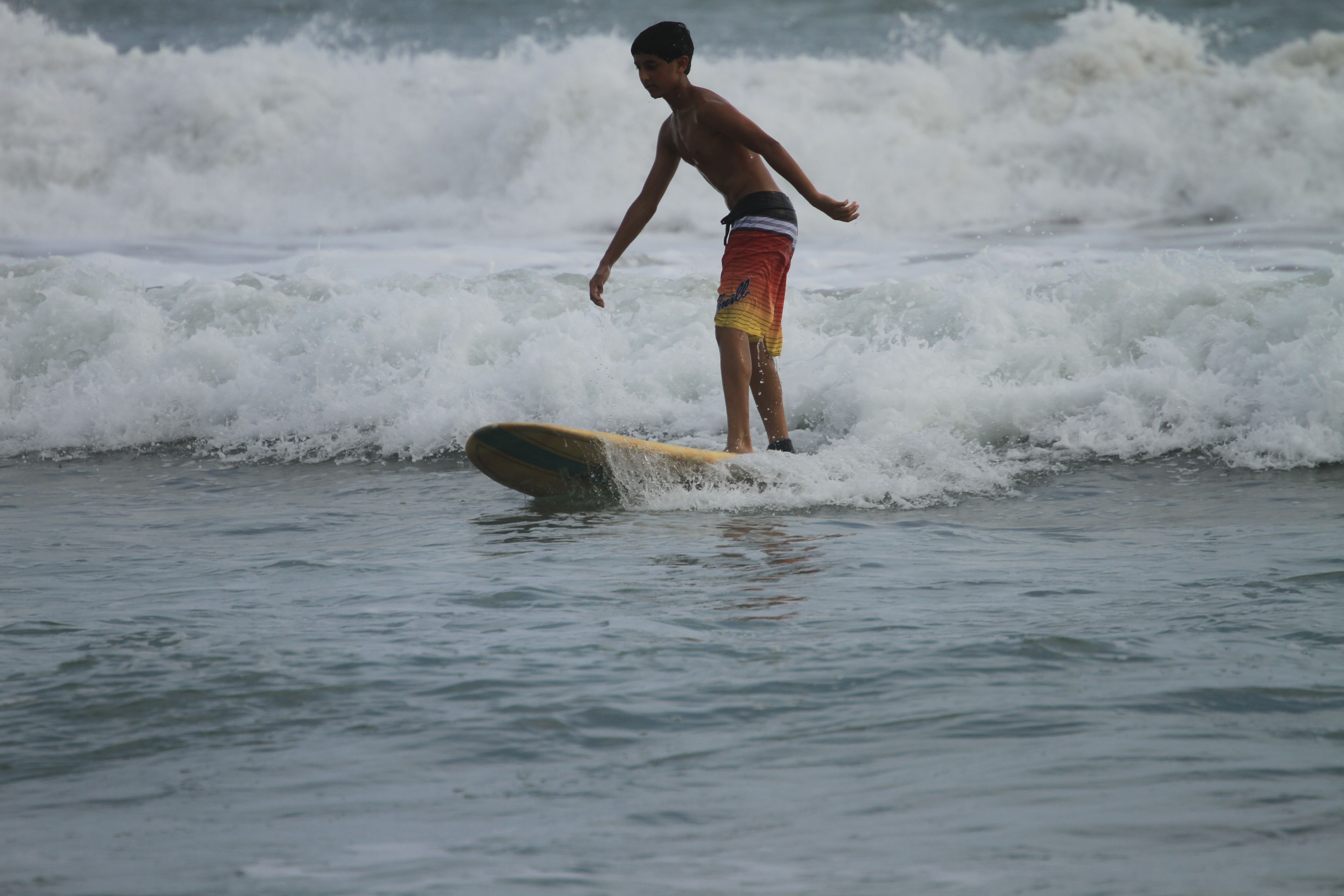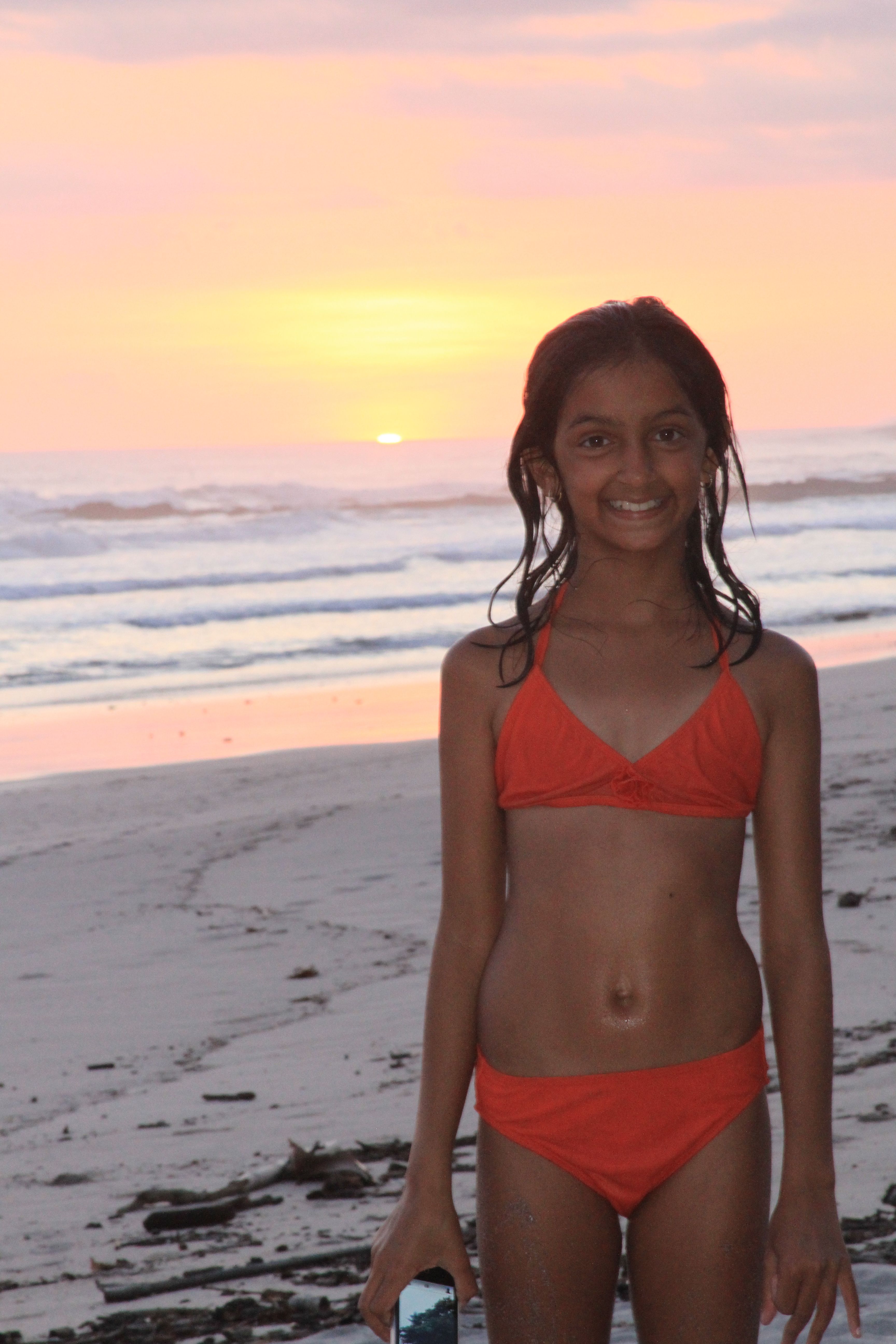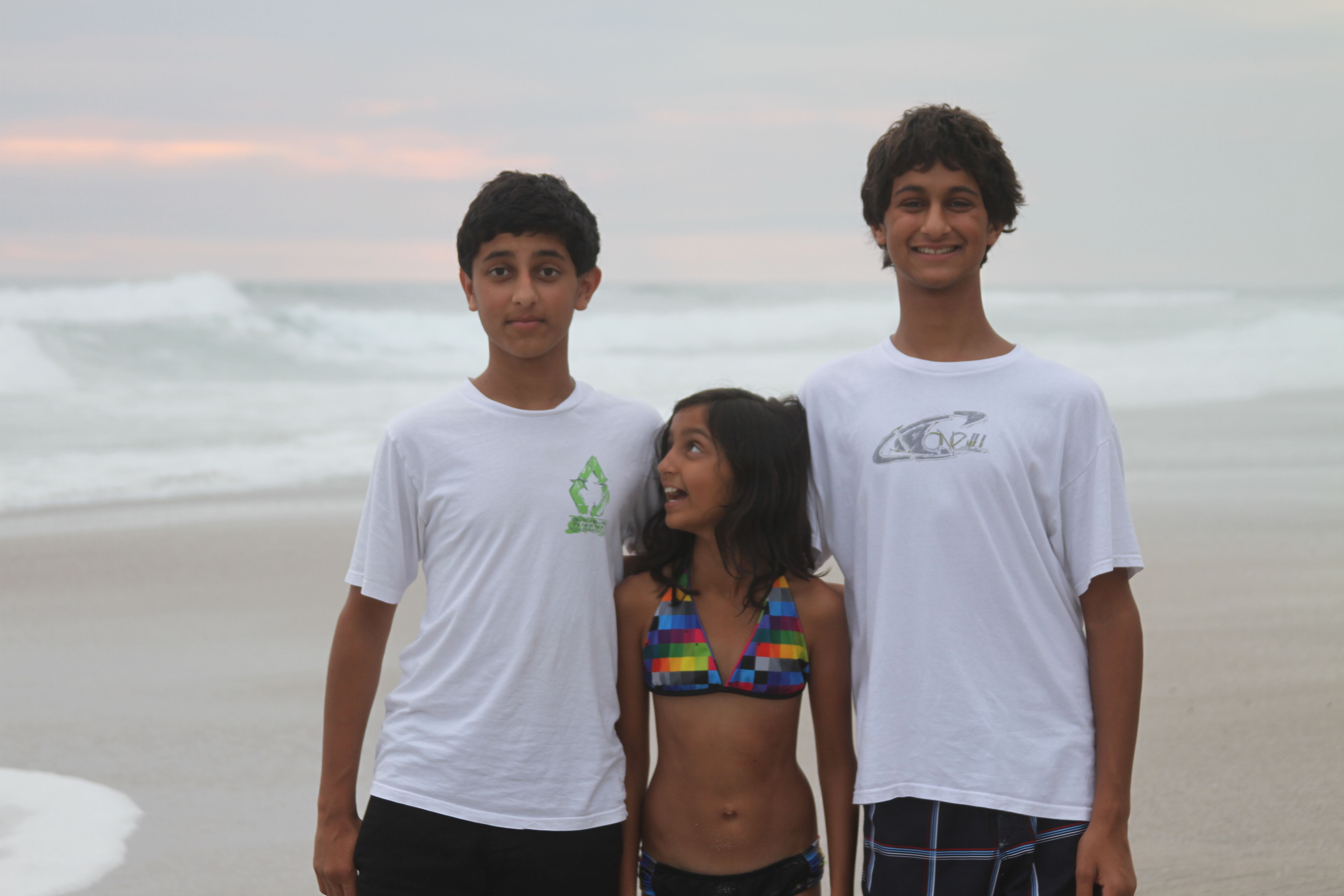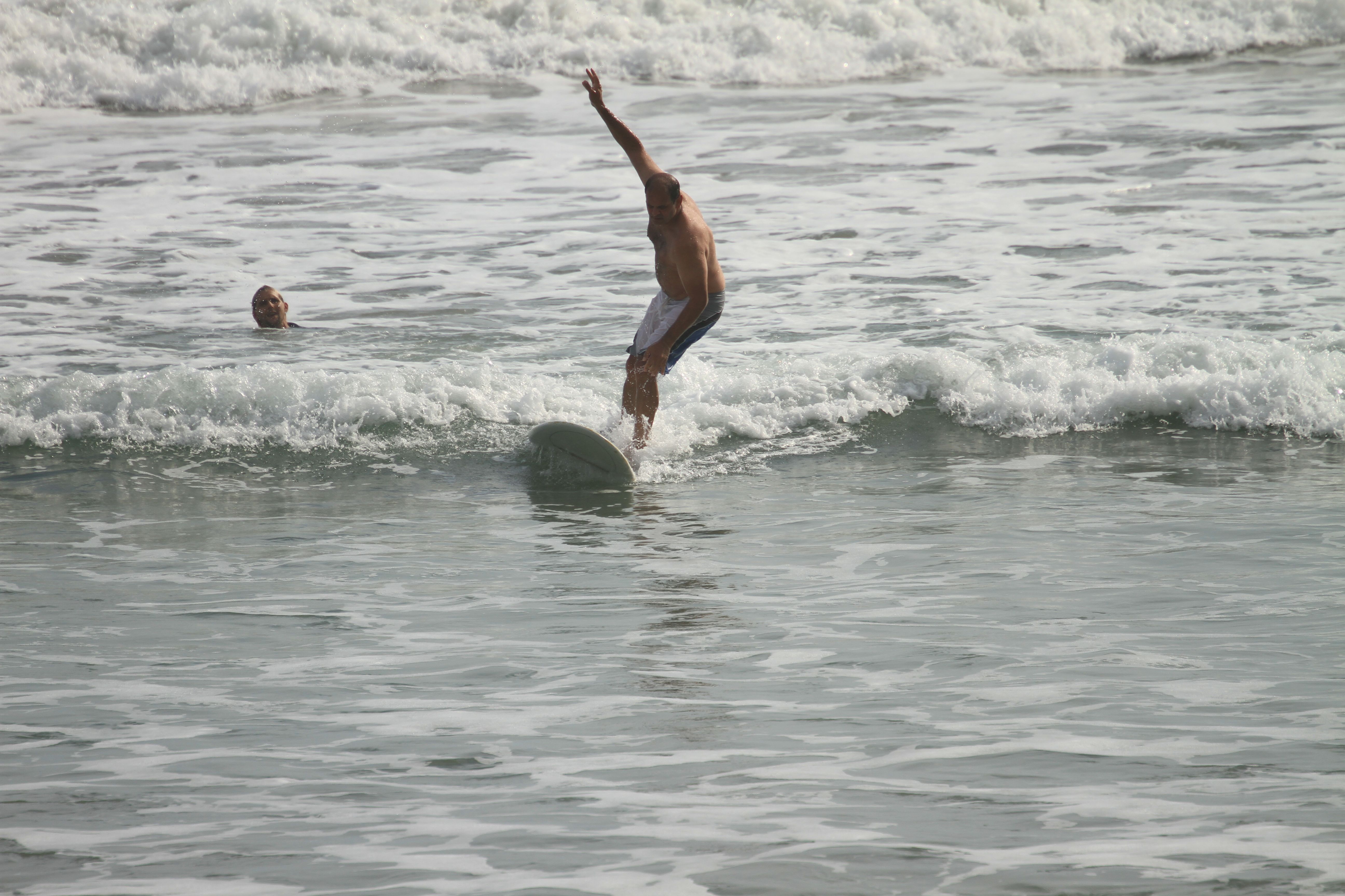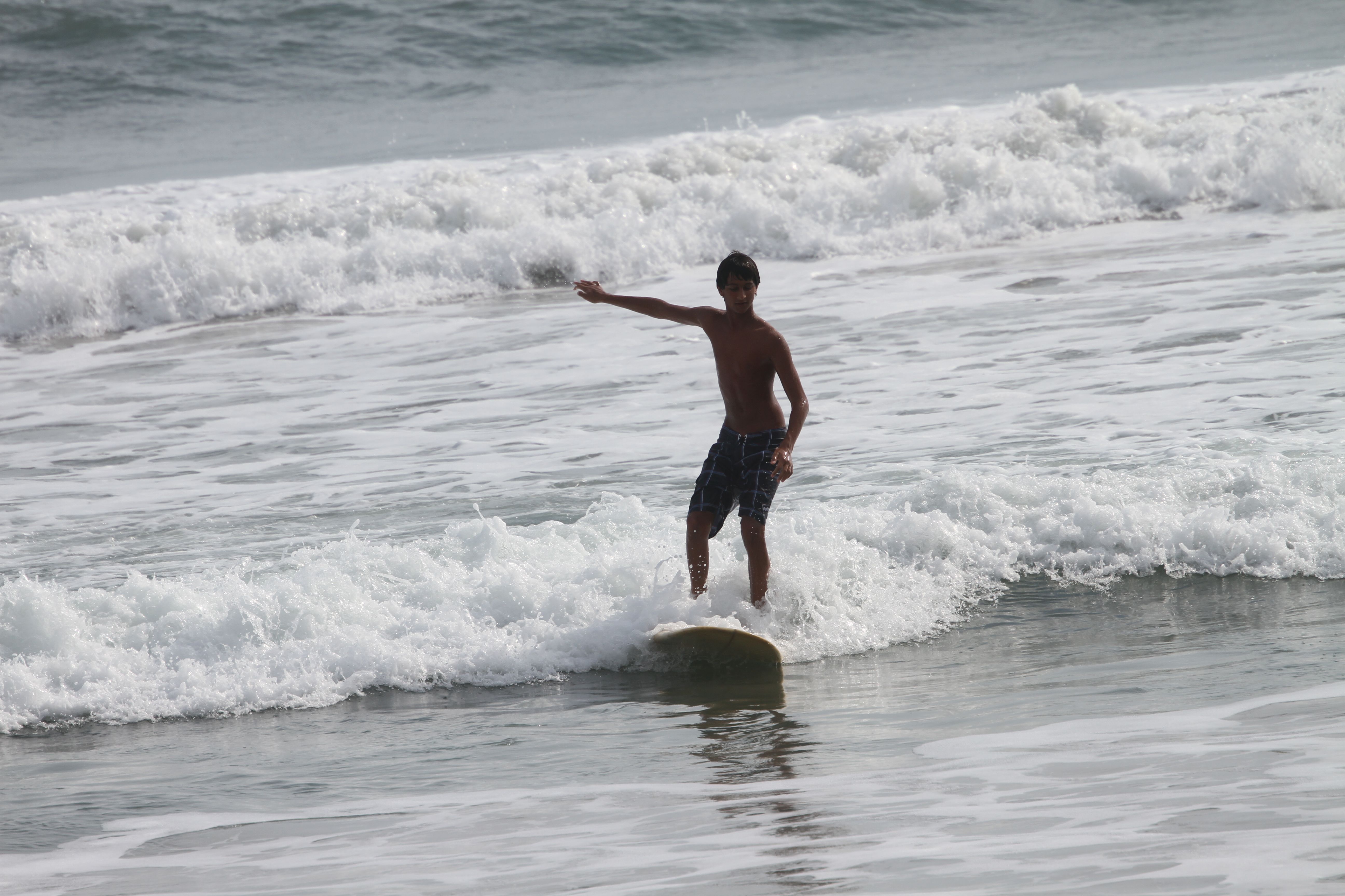 On our second day, we all took surfing lessons. Getting up on the board was not too difficult for the kids.