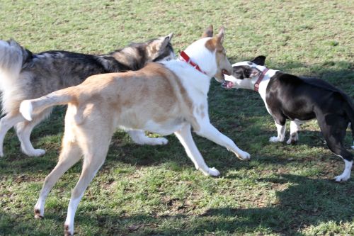Today we took Joey to the dog park and he met another puppy about his same age that likes to play just like him. Here are some fun pictures.